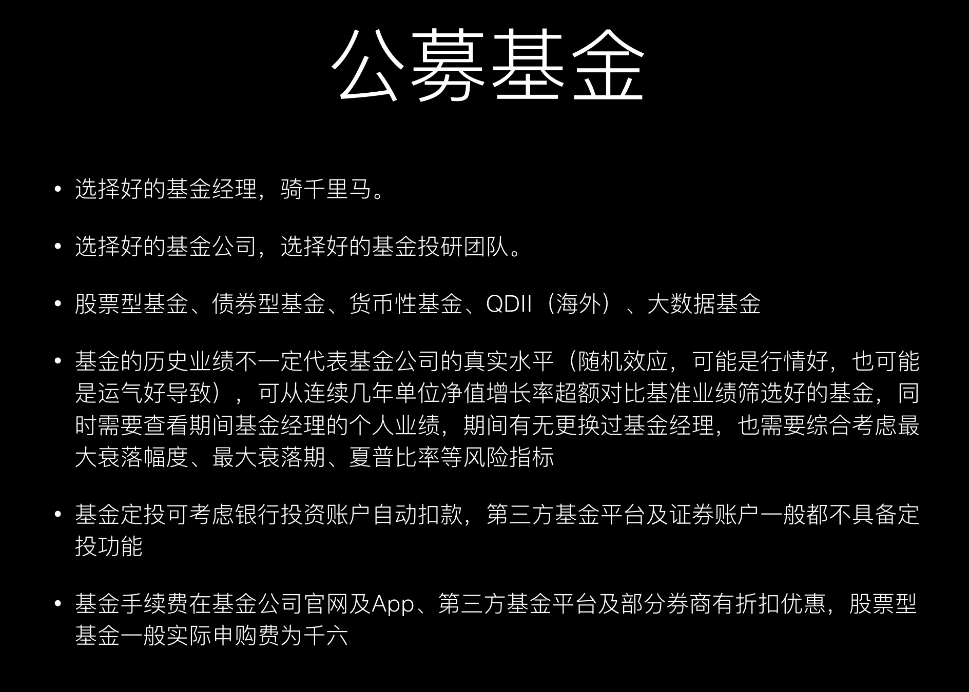 场外基金中公募基金为什么不适合长期定投?我在这里排除它是因为公募基金并不适合系统化投资。买公募基金更多的是押注基金经理和他背后的投资团队。