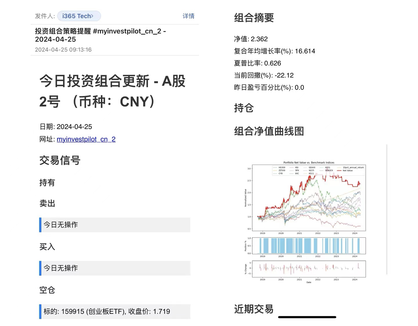 即使我们拥有交易策略,在长期投资中,很容易忘记具体的交易时机,尤其是对于上班族来说,更是没有时间盯盘。为解决这一问题,策引全球投资组合提供了每日交易提醒邮件服务。这样,即使是上班族,也能及时获取交易信号,抓住买卖时机。