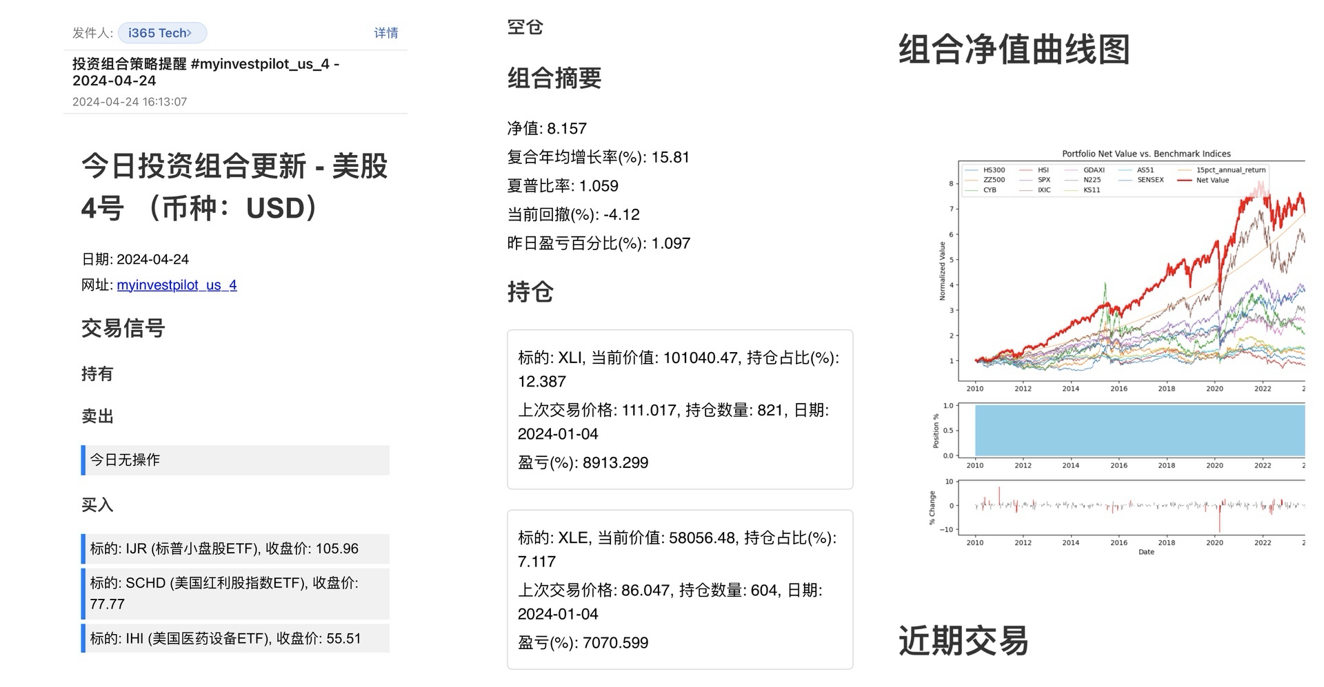 即使我们拥有交易策略,在长期投资中,很容易忘记具体的交易时机,尤其是对于上班族来说,更是没有时间盯盘。为解决这一问题,策引全球投资组合提供了每日交易提醒邮件服务。这样,即使是上班族,也能及时获取交易信号,抓住买卖时机。