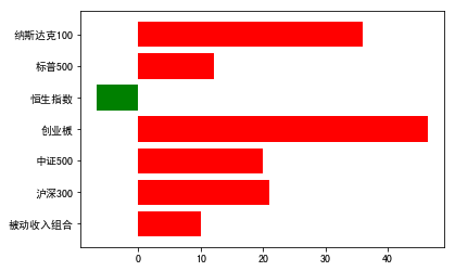 今年被动收入投资组合的净值只涨了10%多,与各大指数相比排名倒数第二,分析原因应该是年初的回撤控制没有做好,导致产生了超过14%的回撤。本组合的夏普比率为0.22,这个只能说控制风险做的一般,好的主动基金夏普率可以达0.7以上。